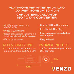 Adattatore per antenna auto. Convertitore da ISO a DIN. Facile da installare. 40x10mm