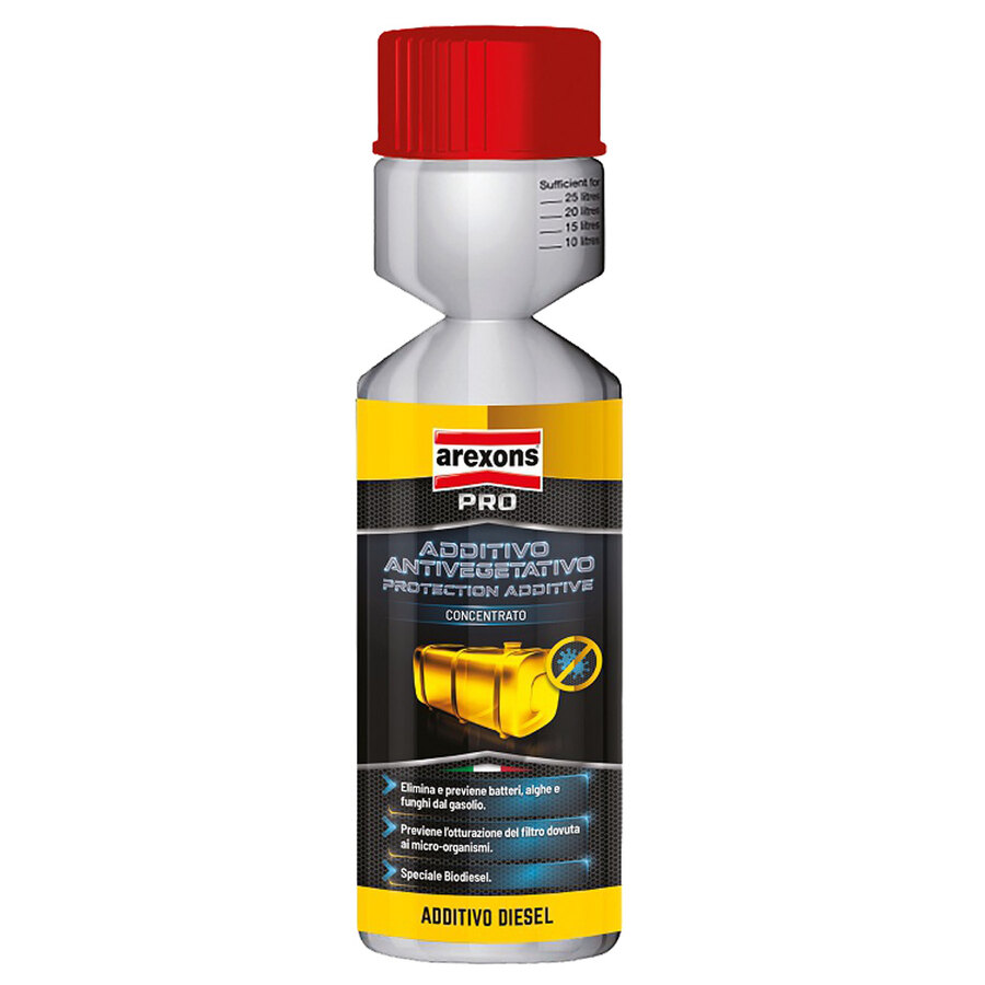 Additivo antivegetativo diesel. Trattamento preventivo e curativo contro la proliferazione di batteri, alghe e funghi nei serbatoi e nelle cisterne di stoccaggio, serbatoi carburante di camper, veicoli commerciali, macchine edili ed agricole, autovetture e imbarcazioni. Non altera la qualità del carburante e ne agevola la filtrabilità. Campo d'impiego: durante il rimessaggio invernale o per lunghi periodi di pausa