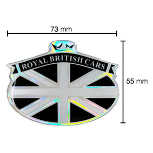 Stemma 3D Royal British Cars. Soggetto autoadesivo trattato con resina trasparente a rilievo. Adesività garantita, ottima resistenza nel tempo. Dettagli precisi e colori brillanti. Grazie ai filtri UV Protective non ingiallisce. Dimensione: 73 x 55 mm