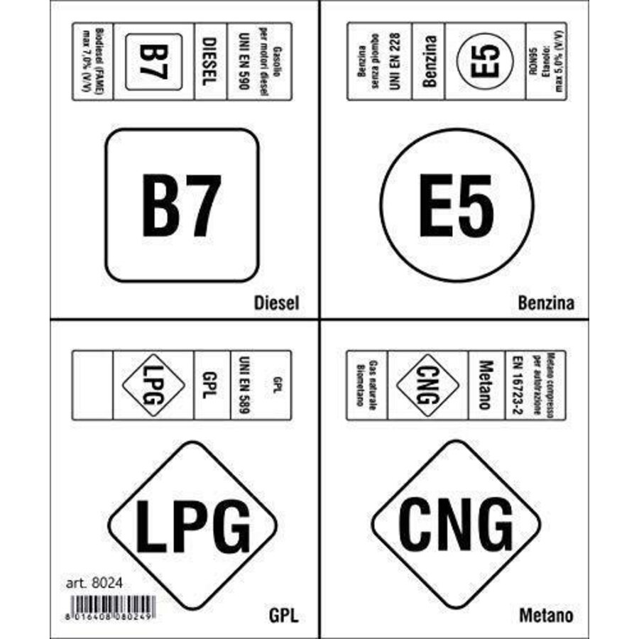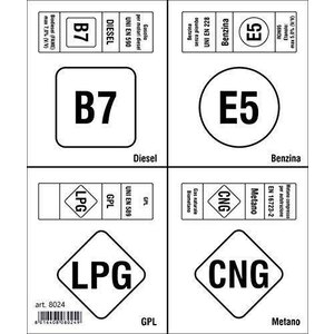 Adesivi carburante: diesel B7, benzina E5, GPL LPG, metano CNG