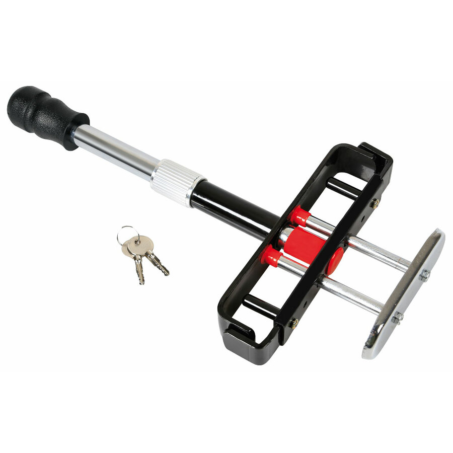 Antifurto bloccapedali. Blocca frizione e freno. Telescopico, regolabile in larghezza. Doppia chiave in dotazione. Si applica in pochi secondi e si chiude a scatto quando posizionato. Nuovo modello telescopico a larghezza regolabile per meglio adattarsi alla maggior parte delle auto