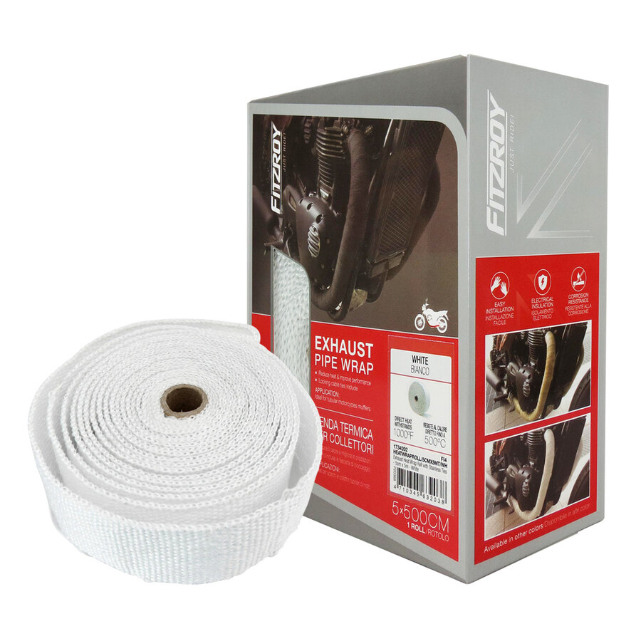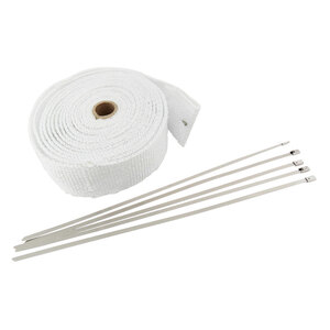 Benda termica per collettori. Riduce il calore e migliora le prestazioni. Riduce la temperatura e le vibrazioni. Sono incluse le fascette di bloccaggio. Ideale per scarichi e collettori tubolari di moto. Realizzato in fibra di vetro/basalto di alta qualità. Riduce il calore alle gambe di circa il 50% (la percentuale varia in base ai diversi usi). Installazione semplice. Isolamento elettrico. Resistente alla corrosione. Resiste al calore diretto fino a 500°C. La confezione include: 1x (5x500cm) benda termica in fibra di vetro; 5x (30cm) fascette in acciaio inox