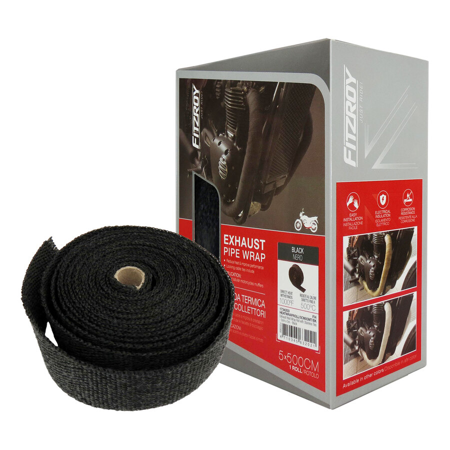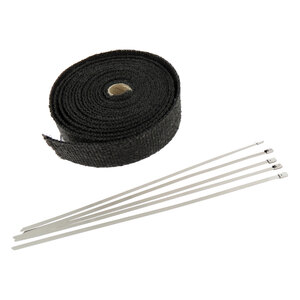 Benda termica per collettori. Riduce il calore e migliora le prestazioni. Riduce la temperatura e le vibrazioni. Sono incluse le fascette di bloccaggio. Ideale per scarichi e collettori tubolari di moto. Realizzato in fibra di vetro/basalto di alta qualità. Riduce il calore alle gambe di circa il 50% (la percentuale varia in base ai diversi usi). Installazione semplice. Isolamento elettrico. Resistente alla corrosione. Resiste al calore diretto fino a 500°C. La confezione include: 1x (5x500cm) benda termica in fibra di vetro; 5x (30cm) fascette in acciaio inox