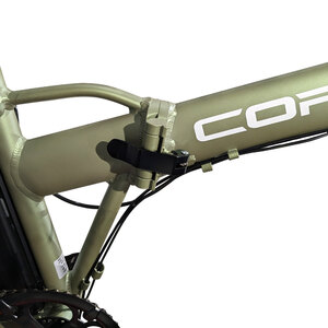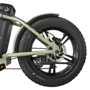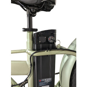 Fat Bike elettrica, pieghevole, in alluminio 20". Forcella ammortizzata bloccabile. Motore posteriore 250W. Batteria 48Vx12,6Ah (604wh) al Litio. Ruote con razze in lega. Display LCD con 5 livelli di assistenza. Cambio Shimano TZ500. Manettino: Shimano Revoshift 6 velocità. Ruota libera Shimano. Freni: disco idraulico Tektro anteriore e posteriore. Copertoni: neri, 20x4,00. Manubrio: alluminio regolabile e ripiegabile. Sella: City Confort Bassano. Cavalletto: laterale acciaio. Luci: solo anteriore. Velocità nominale ca 25km/h. Autonomia ca 75/80km. Peso ca 32kg. Dim.aperta: lungh.173cm h.115cm largh.24cm Dim.chiusa: lungh. 90cm h.88cm larg.48cm