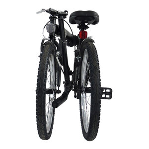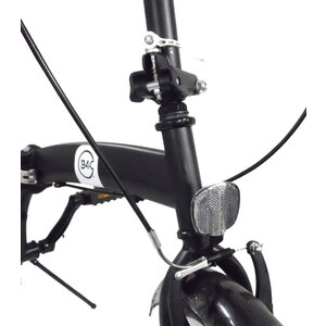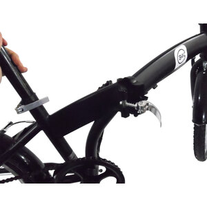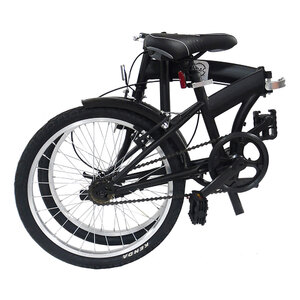 Bicicletta pieghevole. Telaio in acciaio. 1 velocità. Pedali pieghevoli. Paracatena nero. Sella nera. Cerchi in alluminio. Freni V-Brake resina. Guaine nere. Manubrio fisso. Colore nero opaco. Con parafanghi. Pneumatici 20"x1,75