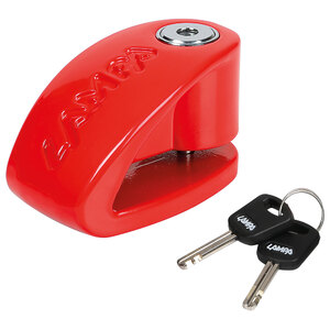 Lucchetto bloccadisco. Perno diam. 5,5 mm. Chiusura rapida autobloccante, senza l'ausilio della chiave. Cilindro rinforzato con placca antitrapano. 2 chiavi in dotazione
