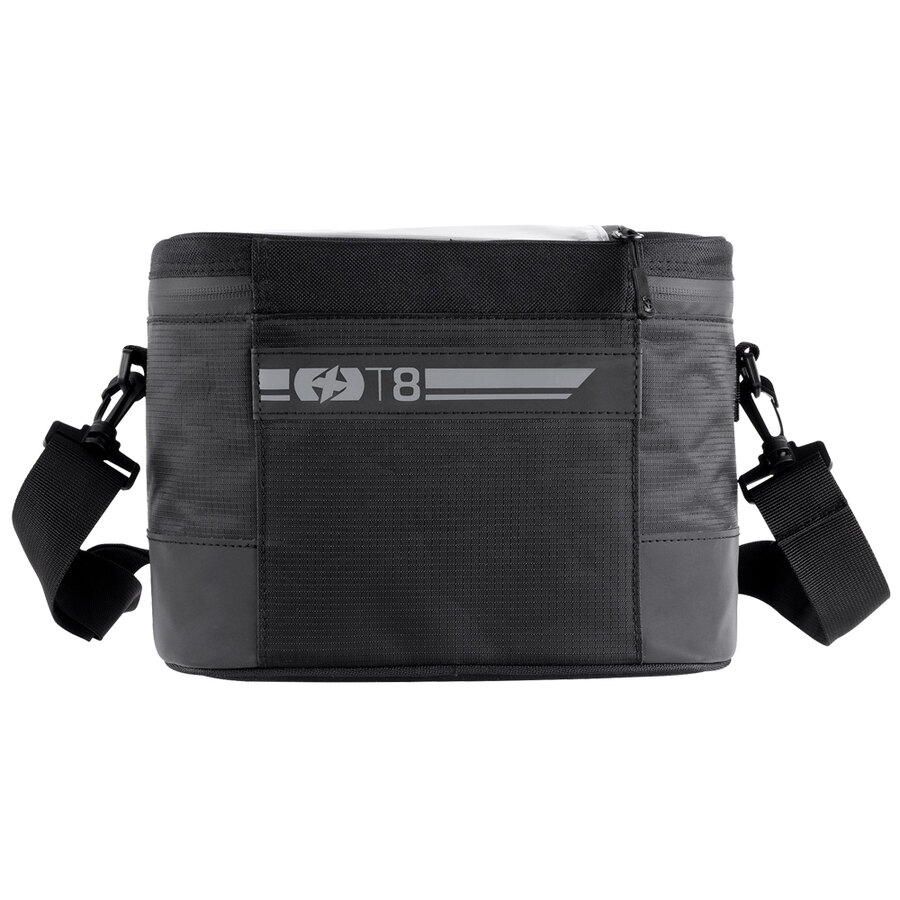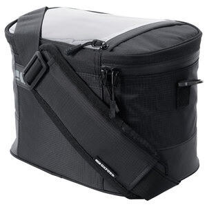 Borsa da manubrio. Resistente struttura in TPU antistrappo e poliestere 600D. Tasca per smartphone con copertura trasparente. Fornita con una tracolla staccabile da utilizzare quando si scende dalla bici. Capacità 8 litri. La staffa di fissaggio è acquistabile separatamente: vedere nostro codice 2085603 o 2085604 (per E-Bike)