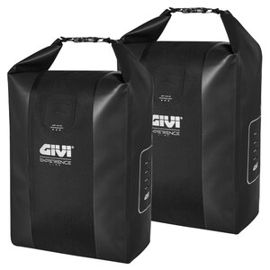 Per i cicloturisti più esigenti. Coppia borse laterali da 20+20lt che si caratterizzano per essere impermeabili ed estremamente versatile grazie al sistema di chiusura Roll-Top. Dotate del nuovo sistema di attacco universale Givi Rapido che permette di agganciare la borsa facilmente alla bicicletta. La maniglia posteriore e la fascia a tracolla removibile permettono di trasportarla comodamente anche a piedi. Internamente ogni borsa é dotata di tasca per laptop imbottita e rete portaoggetti. I patches laterali arricchiti da stampe riflettenti permettono di alloggiare la luce posteriore per aumentare la propria visibilità su strada. Il sistema Air Valve Technology ne facilita la fase di carico e ottimizza la capienza grazie alla fuoriuscita dell'aria in eccesso