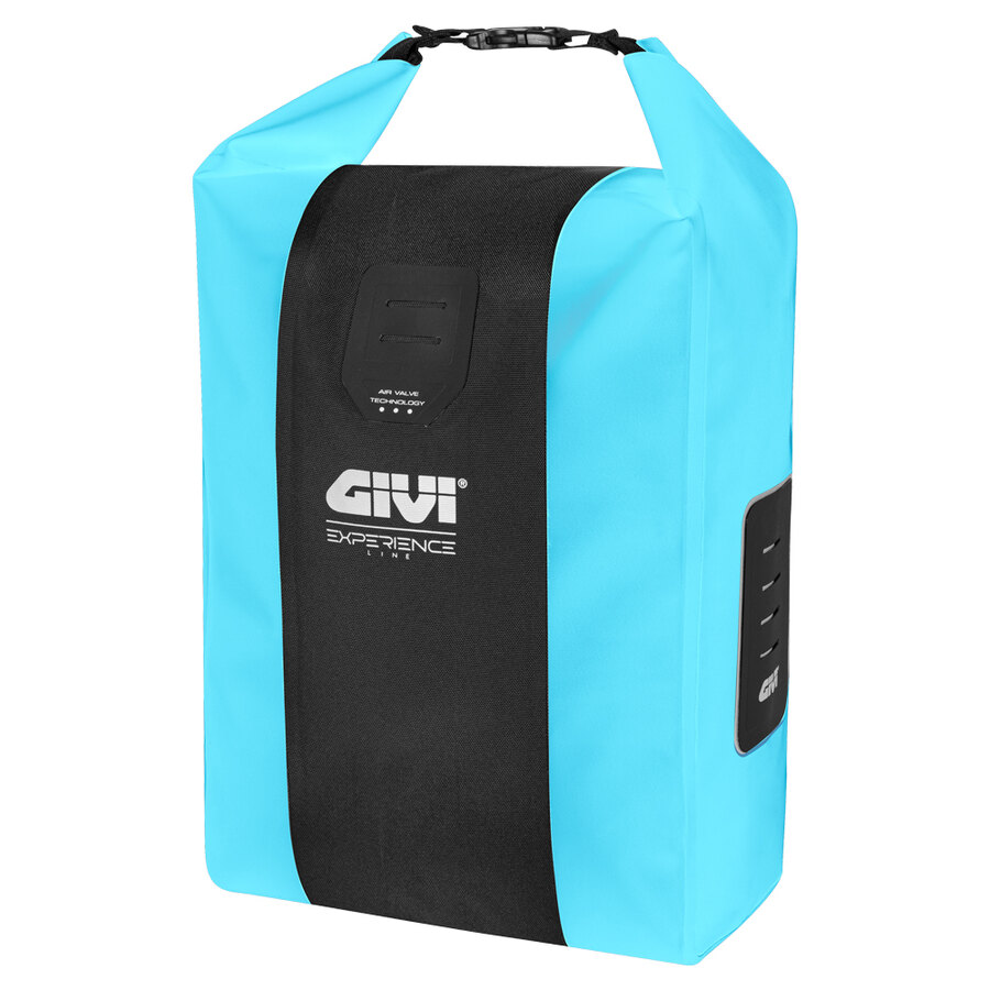 Borsa laterale impermeabile 20lt. Estremamente versatile grazie al sistema di chiusura "Roll-Top". E' dotata del nuovo sistema di attacco universale Givi "Rapido" che permette di agganciare la borsa facilmente alla tua bicicletta. La maniglia posteriore e la fascia a tracolla removibile permettono di trasportarla comodamente anche a piedi. Internamente é dotata di tasca per laptop (fino a 15") imbottita e rete portaoggetti. I patches laterali arricchiti da stampe riflettenti permettono di alloggiare la luce posteriore per aumentare la propria visibilità su strada. Il sistema Air Valve Technology ne facilita la fase di carico e ottimizza la capienza grazie alla fuoriuscita dell'aria in eccesso