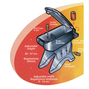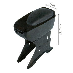 Con portaoggetti completo di staffe per l'installazione. Larghezza max tra i sedili 15cm, altezza 27/33cm.