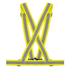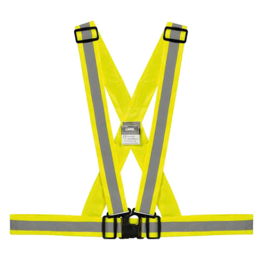 Bretelle catarifrangenti. Certificato secondo le direttive EN13356. Taglia unica con sistema di regolazione tramite fibbie. Accessorio perfetto per essere visibile dai veicoli in tutte le condizioni ambientali