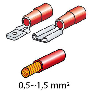 Terminali-capicorda piatti. 20 capicorda M+20 capicorda F. Preisolati x cavi 0,5-1,5 mm2