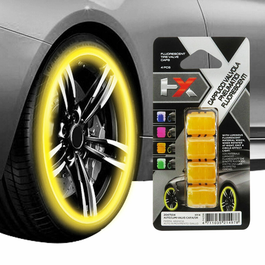 Cappucci valvola per pneumatici. Fluorescenti. Lo strato interno è realizzato in materiale luminoso che emette una luce accattivante di notte. Quando la ruota inizia a muoversi, lampeggerà automaticamente e formerà un cerchio di luce. Ti aiuta anche a trovare rapidamente la valvola se devi gonfiare il pneumatico durante la notte. Diametro interno: 7mm. Ruota ferma: colore arancio. Ruota in movimento: colore giallo.