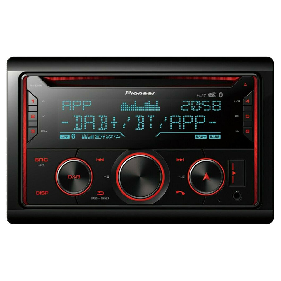 Sintonizzatore CD 2-DIN con DAB/DAB+ (antenna non inclusa). Bluetooth: vivavoce e audio streaming. Illuminazione Multicolour. Ingresso USB. Ingresso Aux. Spotify. Pioneer Smart Sync App. Legge i file FLAC. Equalizzatore grafico a 13 bande. 4x50W mosfet. 3 pre-out RCA. Made for iPhone. Funziona con Android