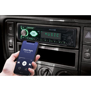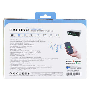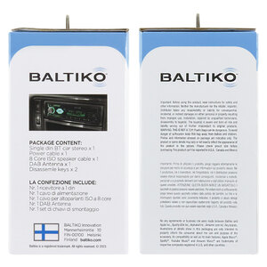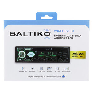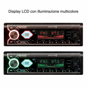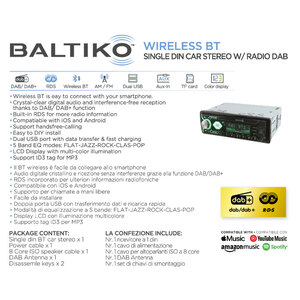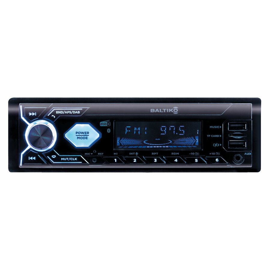 Ricevitore a 1-DIN con sintonizzatore DAB/DAB+ (antenna DAB inclusa). Bluetooth: vivavoce e audio streaming. Audio digitale cristallino e ricezione senza interferenze grazie alla funzione DAB/DAB+. RDS incorporato per ulteriori informazioni radiofoniche. Compatibile con iOS e Android. Supporto per chiamate a mani libere. Doppia porta USB con trasferimento dati e ricarica rapida. Modalità di equalizzazione a 5 bande: FLAT-JAZZ-ROCK-CLAS-POP. Display LCD con illuminazione multicolore. Supporto tag ID3 per MP3. AUX-In frontale. 4x40W