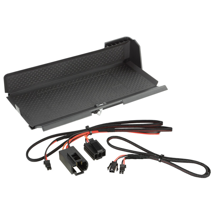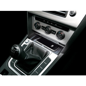Caricabatteria a induzione con tecnologia Qi per la ricarica veloce integrato in vano portaoggetti originale. Certificato "Qi standard". Ricarica stabile e veloce. 3 bobine per l'induzione elettromagnetica. Alimentazione 10-24V. Regolazione automatica della potenza in uscita. Temperatura di ricarica >60°C. Distanza di ricarica 2,3 - 7,5 mm. Compatibile con tutti gli smartphone con tecnologia Qi