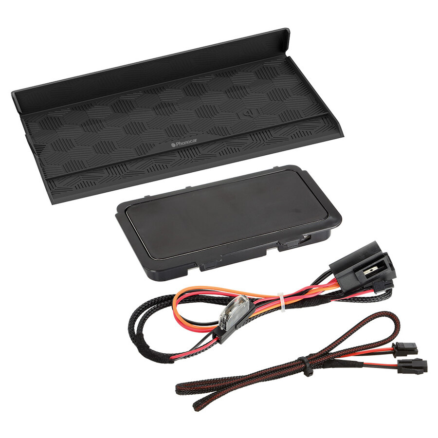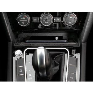 Caricabatteria a induzione con tecnologia Qi per la ricarica veloce integrato in vano portaoggetti originale. Certificato "Qi standard". Ricarica stabile e veloce. 3 bobine per l'induzione elettromagnetica. Alimentazione 10-24V. Regolazione automatica della potenza in uscita. Temperatura di ricarica >60°C. Distanza di ricarica 2,3 - 7,5 mm. Compatibile con tutti gli smartphone con tecnologia Qi