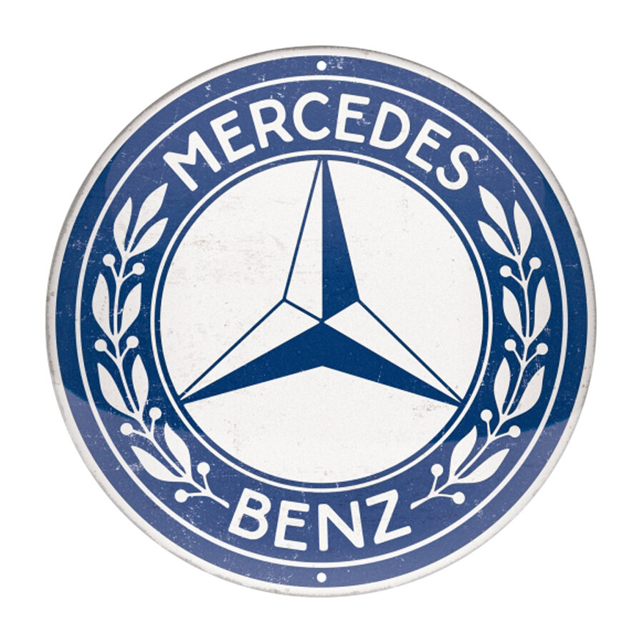 Cartello rotondo "Mercedes-Benz - Logo", in metallo, con 2 fori, lacca protettiva