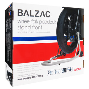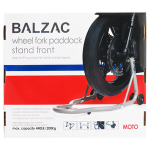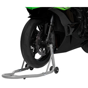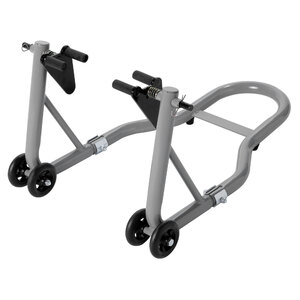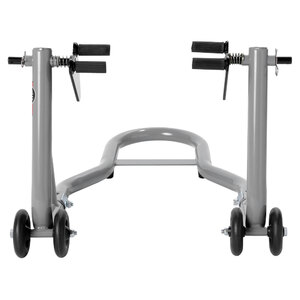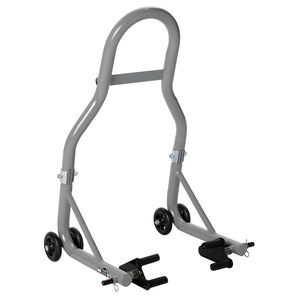 Cavalletto alzamoto anteriore da forcella. Pneumatici compatibili: da 15 a 25cm. Portata massima: 200kg. Facile e sicuro da utilizzare, consente di sollevare la ruota anteriore, facilitando le operazioni di manutenzione, riparazione o semplicemente per riporre la tua moto in garage. Regolazione completa per adattarsi alla maggior parte delle moto sportive. L'ottimo coefficente di leva lo rende facile e semplice da usare. Fornito di 4 ruote per adattarsi ai diversi tipi di terreno. Struttura in acciaio resistente. Semplice da assemblare. Supporti rivestiti in gomma per evitare graffi o danni alla forcella