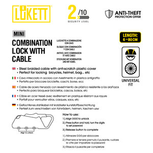 Lucchetto a combinazione con cavo. Cavo intrecciato in acciaio con rivestimento in plastica antigraffio. Perfetto per bloccare biciclette, caschi, borse, ecc. Lunghezza 6>80cm