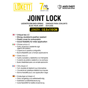 Lucchetto con cavo a spirale. Chiave unica x2. Forte, durevole e resistente agli agenti atmosferici. Copertura in plastica antigraffio. Buona flessibilità per un'ampia applicazione. Diam. 2,5x110cm