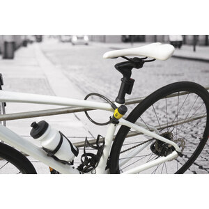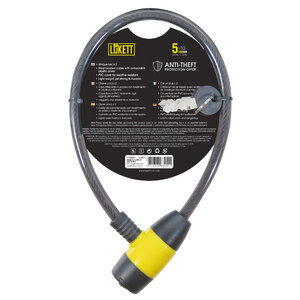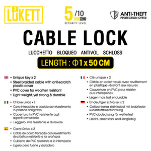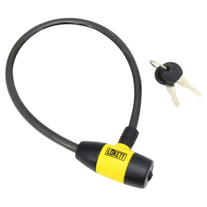 Lucchetto. Chiave unica x2. Cavo intrecciato in acciaio con rivestimento in plastica antigraffio. Copertura in PVC resistente agli agenti atmosferici. Leggero, ma resistente e durevole. Diam. 1x50cm