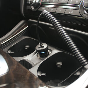 Caricabatterie super veloce Micro USB + porta singola USB. Alimentate i vostri dispositivi in modo rapido ed efficiente. Cavo a spirale da 100cm. Compatibile con una vasta gamma di dispositivi elettronici. Indicatore a LED per localizzare facilmente il caricabatteria in auto. Cavo a spirale per evitare la formazione di nodi e aggrovigliamenti. Design minimal con illuminazione interna a LED blu Ingresso: DC 12V-24V. Uscita: 5V- 2.4A