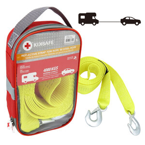 Corda da traino estensibile con gancio in acciaio. Capacità di lavoro 2800 kg. Capacità di carico fino a 4000 kg. Elastico iniziale per assorbire gli urti e gli strappi improvvisi dell'auto. Dotato di un robusto gancio in acciaio. Gancio di sicurezza per evitare che il gancio cada o si sganci. Le manopole in plastica nera proteggono la corda dallo sfilacciamento. Peso di Hokk: 180g