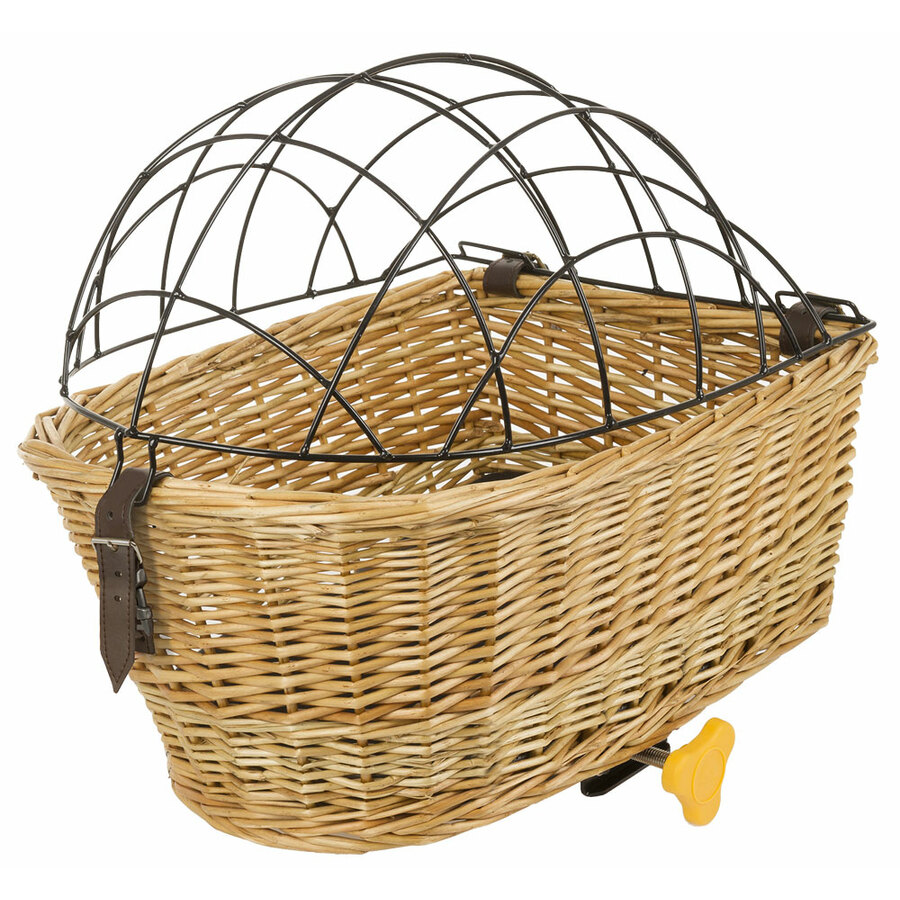 Cestino in vimini, utile per il trasporto di animali domestici. Si fissa al portapacchi posteriore. Carici massimo 15kg. Misure (L x P x A) 43,5x31x22/16,5cm