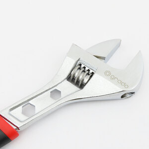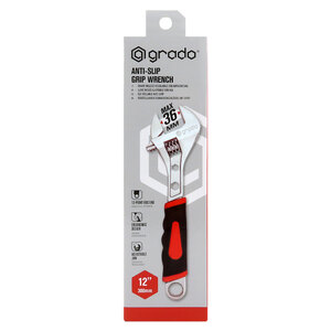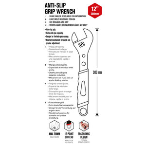 Chiave inglese regolabile con impugnatura ergonomica. Presa anti-scivolo. Ganascia extra-larga. Pensato per l'utilizzo in spazi limitati. Meccanismo zigrinato per una regolazione rapida e precisa. Apertura max 36mm Anello a 12 punte. 12" - 300mm