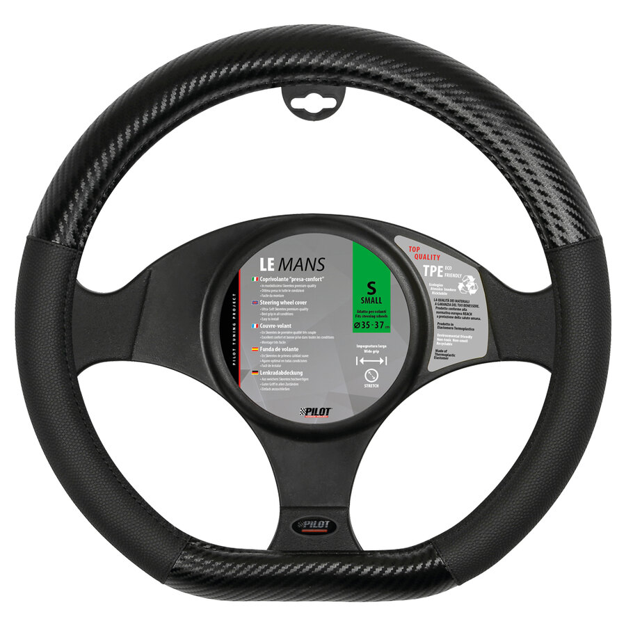 Coprivolante in Skeentex. Inserti in carbon opaco. Ottima presa in tutte le condizioni. Per volanti con diametro esterno 35>37cm