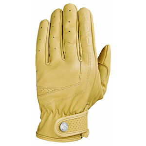 Guanti in pelle di capretto. Rinforzi sul lato della mano e sfera del pollice. Palmo rinforzato. Colore permanente e a prova di sudore. Infradita traforato. Polso con chiusura regolabile in velcro. Pelle delle dita speciale ad alta sensibilità che permette di operare sugli smartphone. Palmo sfoderato. Dorso con fodera sottile. Certificato con la normativa EN 13594:2015 "guanti di protezione per motociclisti"