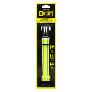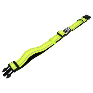Collare per cani riflettente. Design riflettente. Lunghezza regolabile. Design con anelli a D. Particolari riflettenti per migliorare la vibilità. Realizzato in nylon color giallo fosforescente. Facile da regolare. Cuscinetto imbottito in neopreme. Anello a D resistente e fibbia in plastica