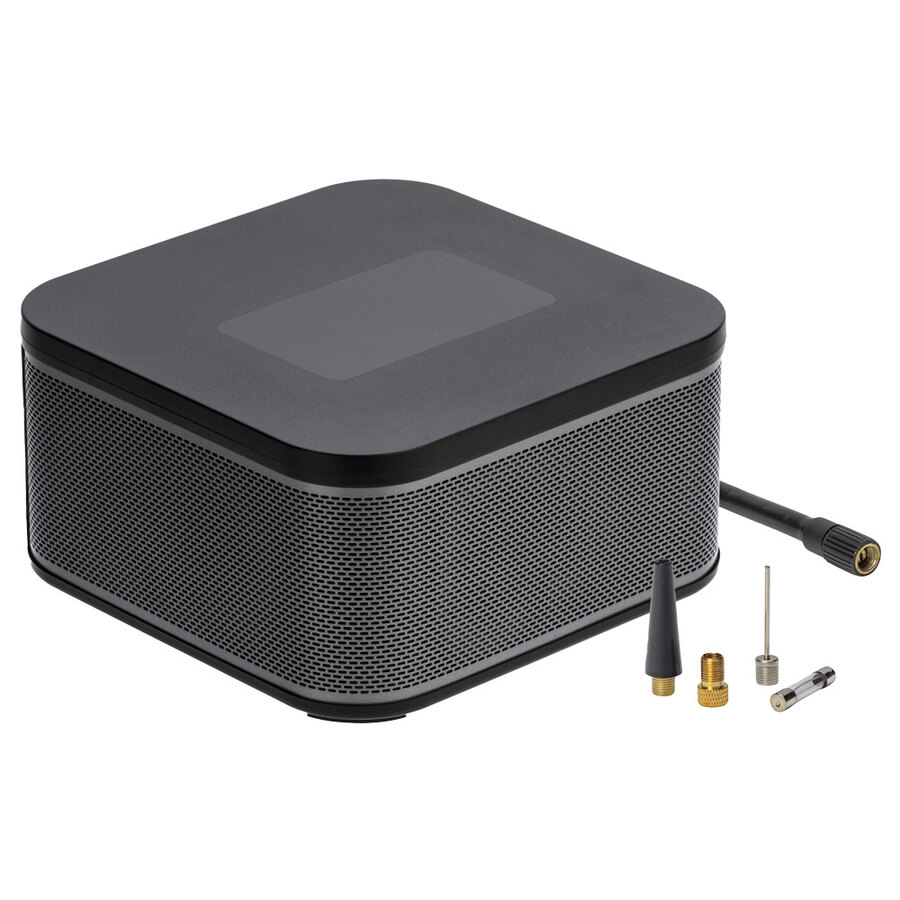 Compressore portatile wireless ricaricabile con batteria agli ioni di litio e presa USB per la ricarica. Dotato di display digitale Touch Screen. Ideale per essere utilizzato ovunque sia richiesto senza la necessità di avere nelle vicinanze una presa elettrica dove collegare il cavo di alimentazione. Perfetto per gonfiare copertoni di auto, moto, biciclette e palloni. Corpo in resistente materiale plastico. Display digitale. Batteria agli ioni di litio 2500mAh. Presa USB per la ricarica. Cavo di alimentazione/ricarica USB - lunghezza 1,5m. Con adattatore 5V DC/1A. Tubo aria in gomma con connettore a sgancio rapido. Lunghezza 60cm. Completo di 2 adattatori ed 1 ago sportivo. mbar: 3 - 150PSI / 0,2 - 10,3bar. 100W Peso 1,32kg