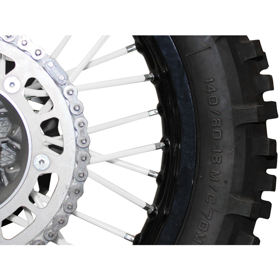 Kit adesivi composto da 72 copriraggi che permettono di decorare le ruote della moto. Può essere applicato su cerchi da 17'', 18'', 19'' e 21". Per i minicross bisognerà tagliare gli adesivi alle estremità per adattarli al diametro inferiore dei cerchi