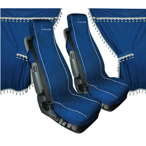 set tende e coprisedili in microfibra per camion. Composto da: 2 coprisedili, 2 tende vetri, 2 tende centrali, 1 fascia parasole, 4 fasce raccoglitenda calamitate, 90 ganci in plastica. Universale per la maggior parte dei camion con cabina e sedili standard