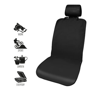 Proteggi sedile anteriore di misura standard, singolo, resistente all'acqua. Certificato Azo-dye. Prodotto essenziale per mantenere il rivestimento interno del vostro veicolo pulito e ordinato. Protegge da fango e sporcizia quotidiana. Poliestere resistente all'acqua e super durevole. Ideale per proteggere contro lo sporco, le macchie, i liquidi, la polvere, gli alimenti, ecc. Protegge anche dal fango, dai peli, dagli artigli e dagli odori. Mantiene pulito anche quando si è bagnati, sporchi o sudati. Cinturino con fibbia regolabile per fissarlo nella posizione desiderata. Misura universale che si adatta alla maggior parte dei sedili normali. Compatibile con l'airbag laterale