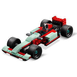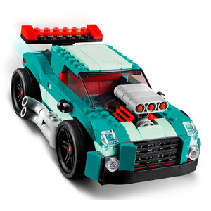 Gli appassionati di auto superveloci possono scendere in strada o in pista con questo straordinario set di costruzione Street Racer LEGO Creator 3-in1 (31127). 3 diverse esperienze di costruzione e di gioco con questo set giocattolo Lego Creator -3-in-1. I bambinipossono costruire la muscle car Street Racer, per poi ricostruirla in un'auto da corsa o in un bolide rosso e verde personalizzato, oppure possono accedere l'immaginazione per creare un'altra potente auto sportiva. Dettagli realistici: lo Street Racerè dotato di tubi laterali, spoiler, compressore e tetto rimovibile, mentre l'auto da corsa ha un sedile basso e il bolide rosso e verde ha un grande motore. Lo Street Racer misura 6 cm di altezza, 16 cm di lunghezza e 9 cm di larghezza