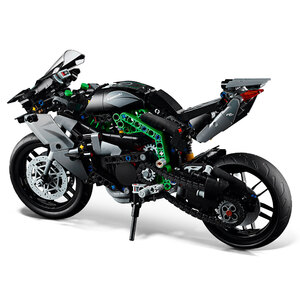 Ispira i bambini a esplorare l'ingegneria e la tecnologia con la Motocicletta Kawasaki Ninja H2R Lego Technic. Questo set ricrea fedelmente i dettagli di una delle motociclette di serie più veloci al mondo. Motocicletta in scala 1:8. E' dotata di sterzo, sospensioni, cambio a 2 velocità, motore articolato a 4 pistoni e turbocompressore. Lo speciale elemento del parabrezza presenta decorazioni personalizzate e il logo Kawasaki è posizionato su entrambi i lati del serbatoio del carburante. La motocicletta misura 17cm di altezza, 31cm di lunghezza e 9cm di larghezza