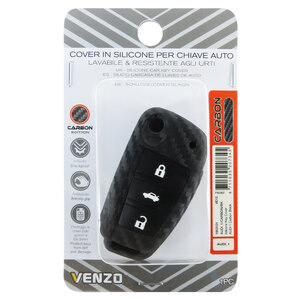 Cover in silicone per chiave auto. Texture in fibra di carbonio, elegante. Fornisce una protezione completa. Realizzata in materiale morbido al tatto, inodore, flessibile e di lunga durata. Facile da installare in pochi secondi. Calza perfettamente senza compromettere le funzionalità dei tasti. Evita che le chiavi dell'auto si sporchino e si graffino. Lavabile e facile da pulire