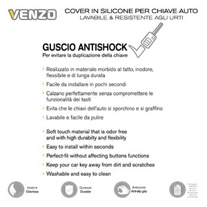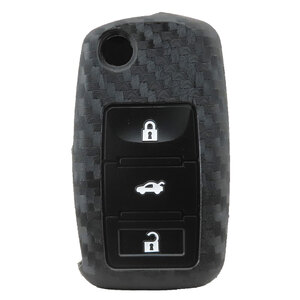 Cover in silicone per chiave auto. Texture in fibra di carbonio, elegante. Fornisce una protezione completa. Realizzata in materiale morbido al tatto, inodore, flessibile e di lunga durata. Facile da installare in pochi secondi. Calza perfettamente senza compromettere le funzionalità dei tasti. Evita che le chiavi dell'auto si sporchino e si graffino. Lavabile e facile da pulire