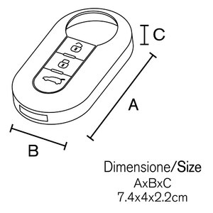 Cover chiave Fiat A02H - VENZO Citroen Jumper, Dodge Ram, Fiat 500, 500L, Bravo, Ducato, Panda, Punto, Lancia Lybra, Musa 7,4x4x2,2cm