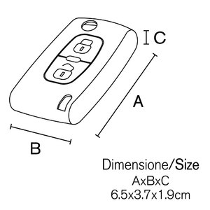 Cover chiave Peugeot, Citroen D02H2 - VENZO Citroen C2, C3, C4, C5, C6, C8, Xsara, Peugeot 107, 207, 307 6,5x3,7x1,9cm