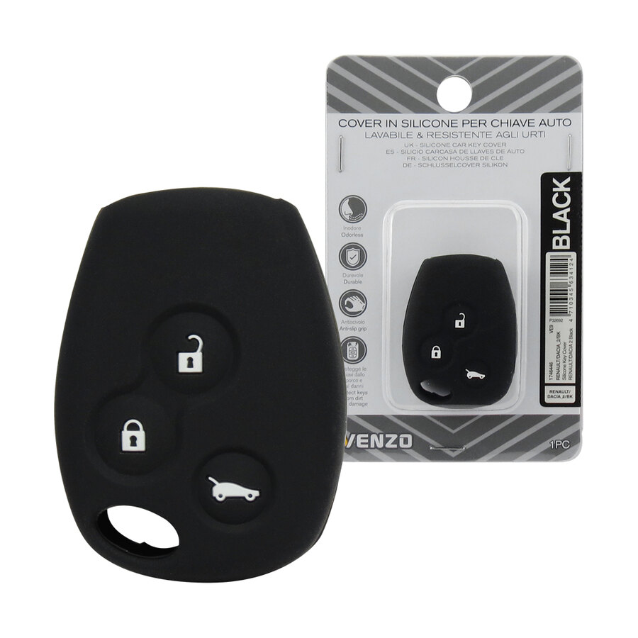 Cover in silicone per chiave auto. Realizzata in materiale morbido al tatto, inodore, di lunga durata e con design antiscivolo. Protegge le chiavi dallo sporco e dai graffi. Facile da installare in pochi secondi. Calzano perfettamente senza compromettere le funzionalità dei tasti. Lavabile e resistente agli urti. Compatibile con Renault