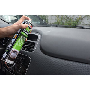 Pulisce e igienizza il cruscotto, eliminando acari, polvere ed odore di fumo. Grazie alla propria formula pulente e igienizzante, sconfigge gli acari e ritarda il depositarsi della polvere