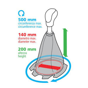 Cuffia leva cambio in pelle naturale. Completa di ghiera. Misura universale adatta per base di appoggio cuffia fino a: 500 mm di circonferenza o 140 mm diametro. Altezza cuffia 200 mm
