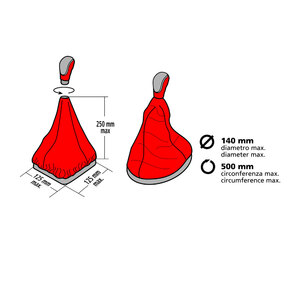 In vera pelle. Misura universale, adatta per tutte le vetture che come base di appoggio cuffia misurano fino a 125x125 mm oppure 140 mm di diametro. Altezza cuffia 250 mm