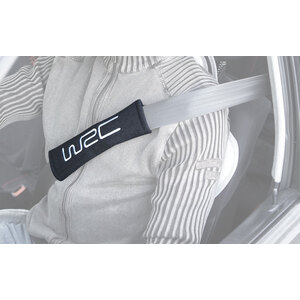 Coppia cuscinetti cintura di sicurezza dal look sportivo. Rendono meno opprimente l'uso delle cinture. Chiusura con velcro. Colore nero con ricamo WRC bianco