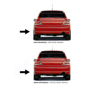 Kit di 2 distanziali specifici. Per le vetture che lo prevedono, ogni distanziale viene fornito con un foro svasato e una vite allo scopo di fissarlo al mozzo ruota