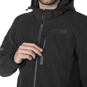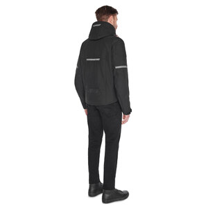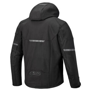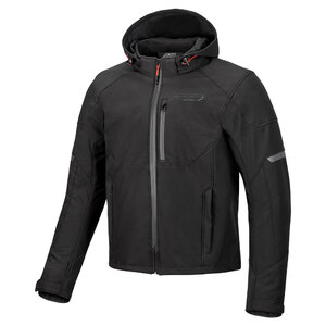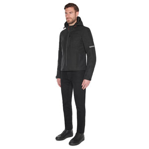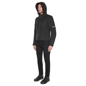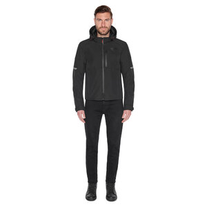 Giacca da uomo in tessuto, quattro stagioni con cappuccio staccabile. Giacca esterna in tessuto "softshell" antivento. Cappuccio staccabile con zip e chiusura frontale sul collo. Chiusura frontale con zip water repellent. 1 utility pocket al torace con zip water repellent. 2 tasche al fondo con chiusura zip. Multi regolazioni su cappuccio, polsi e fondo capo. Polsi con costruzione antivento. Dettagli riflettenti "stealth" su cappuccio, maniche e schiena. Interno foderato in tessuto traspirante. Tasca interna con velcro. Tasca interna impermeabile con zip. Certificato secondo normativa EN17092:2020 Livello: Classe A. Protezioni EN1621-1 Livello 1Type A su spalle e gomiti. Predisposizione paraschiena EN1621-2 liv. 2 (paraschiena non incluso L 1903888 L>5XL, M 1903889 S>M)